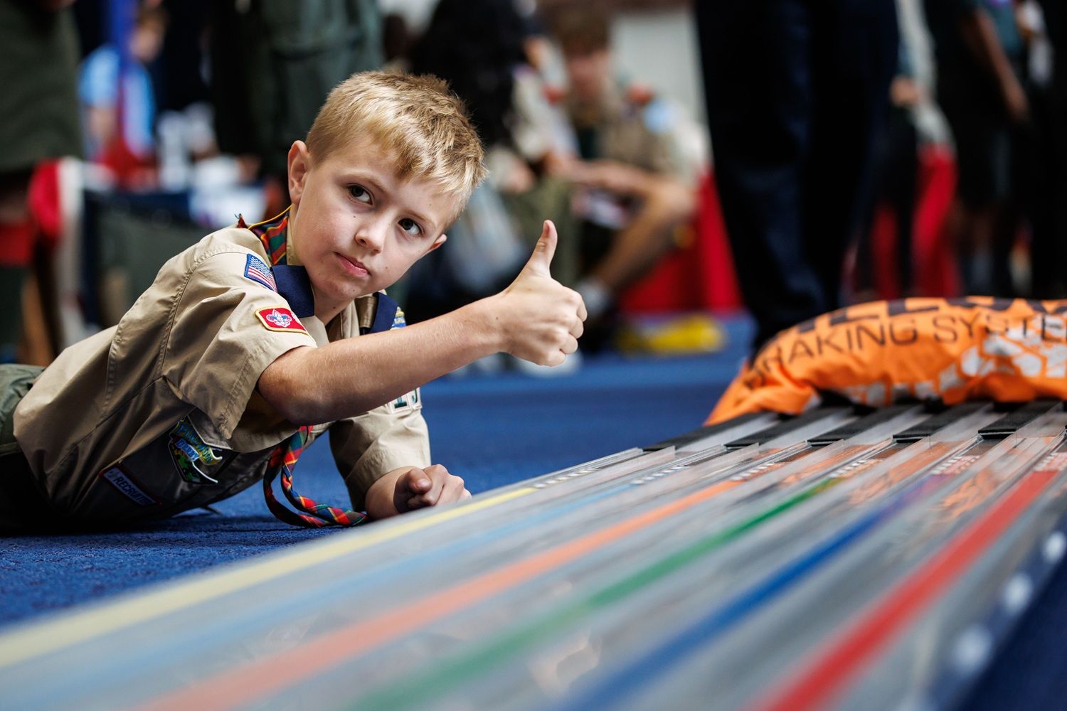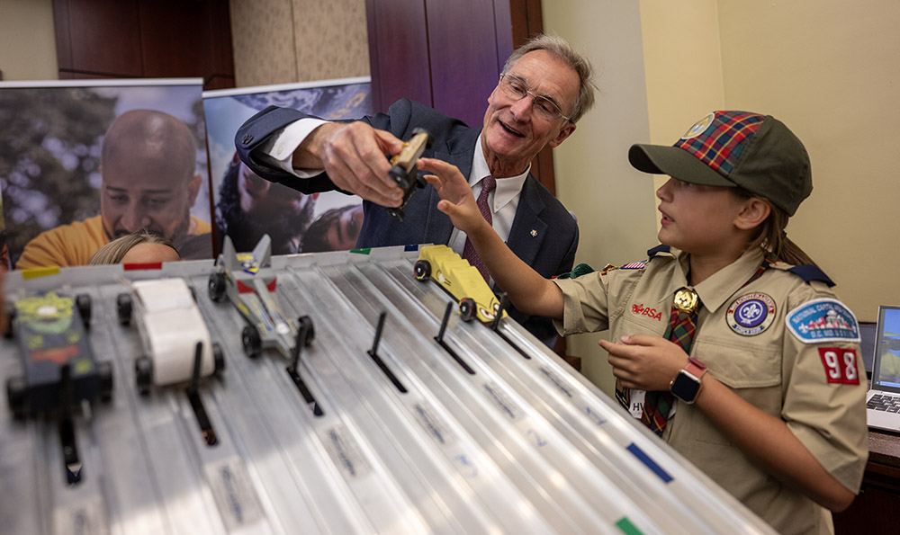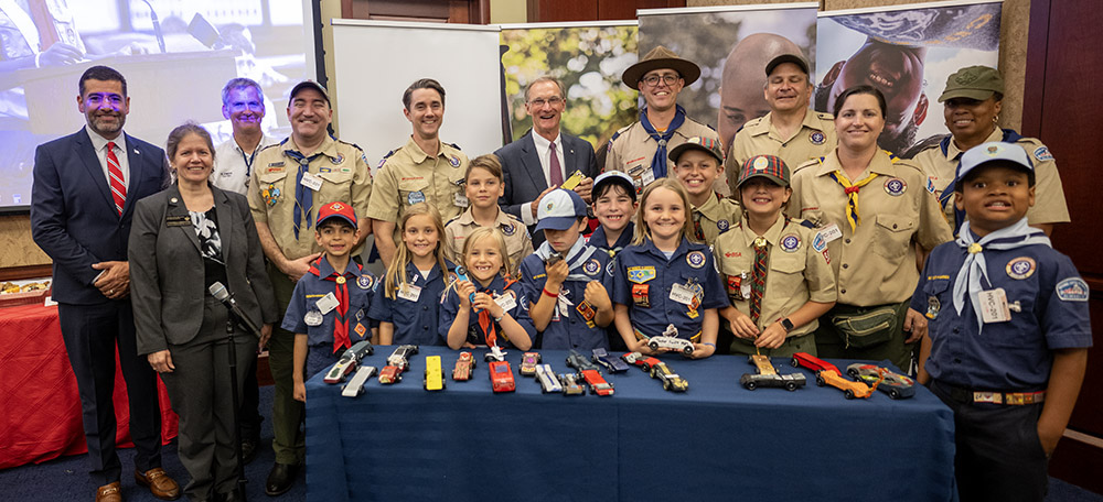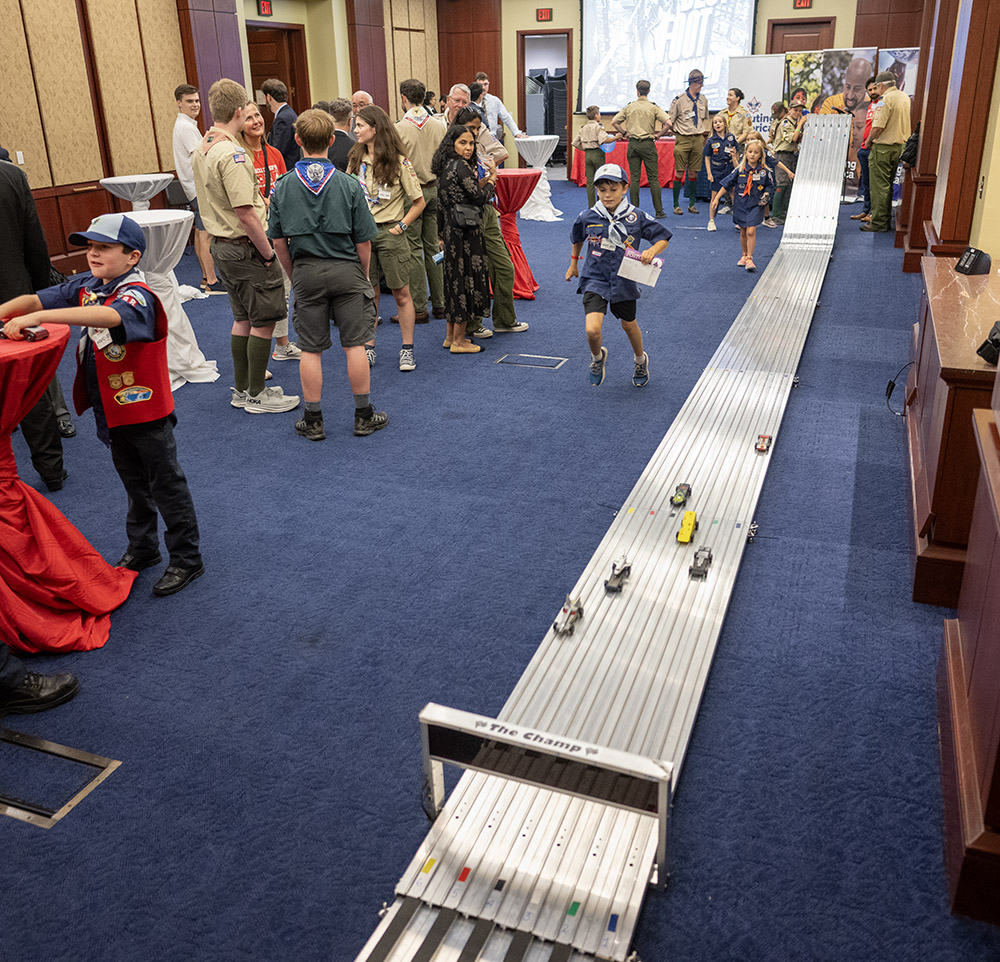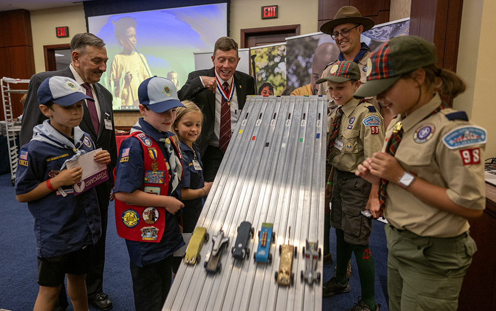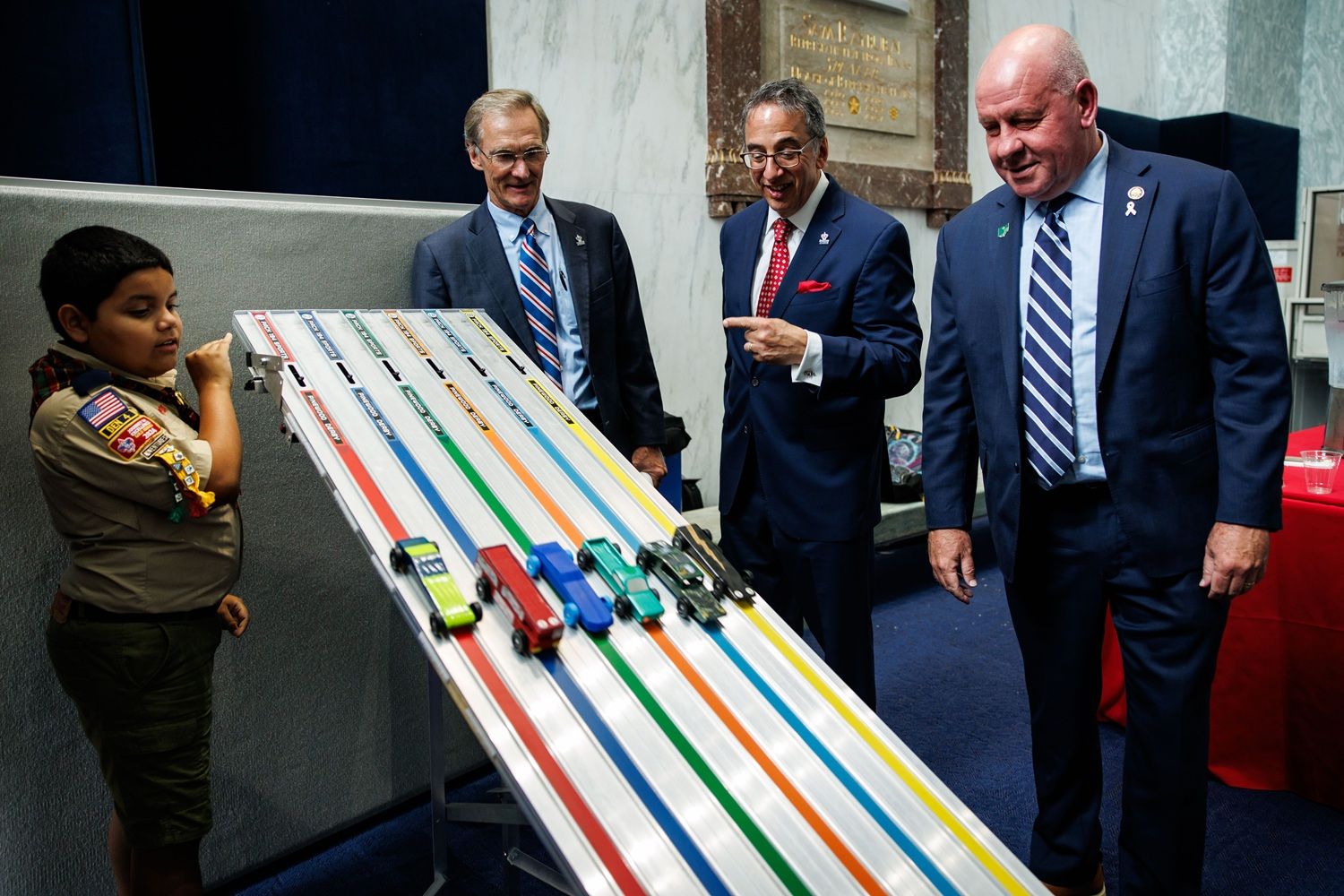 Greater Washington DC metro area Scouts joined CEO Roger Krone, astronaut Mike Fossum and Members of Congress to discuss the importance of Scouting, meet with Congress and race the very first Pinewood Derby® in our nation’s capital.
